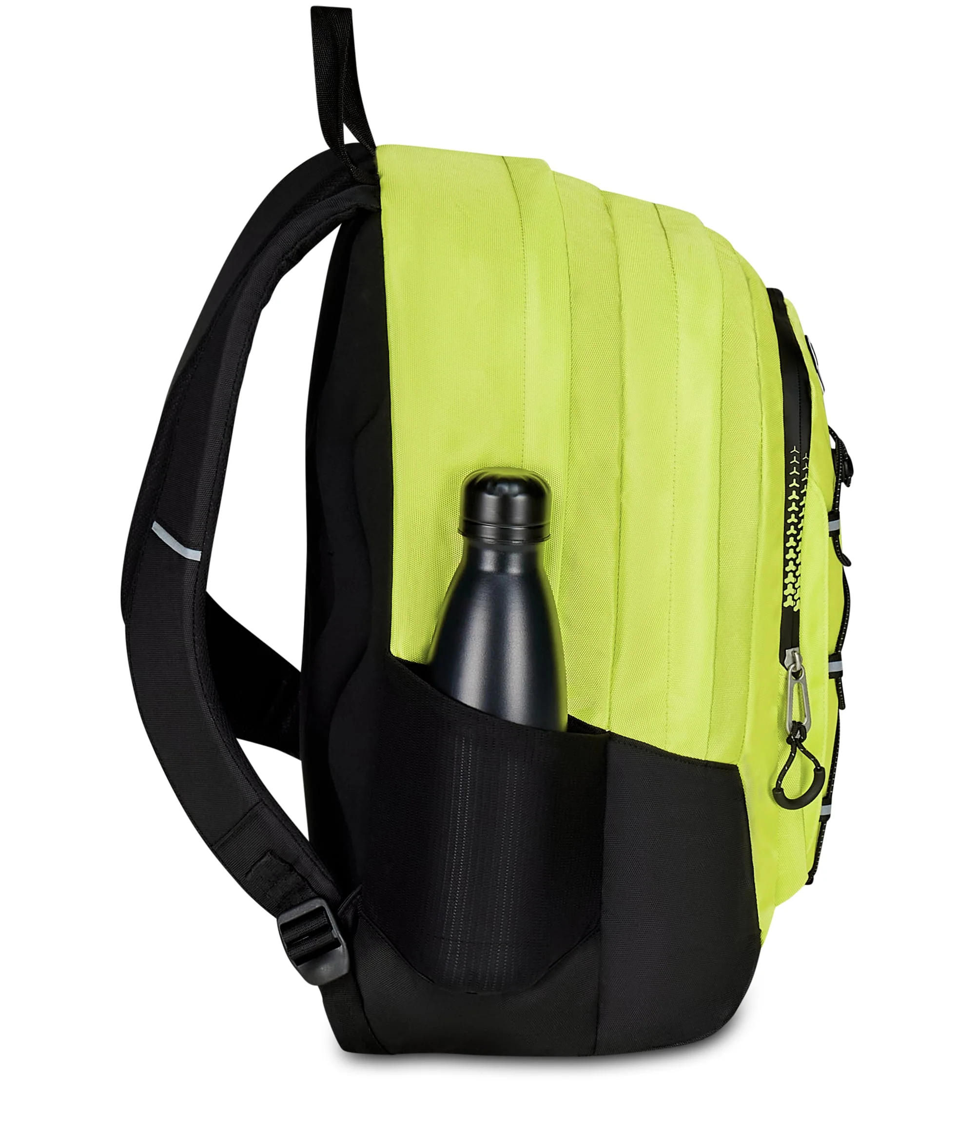 Comodo, pratico e con dettagli dallo stile distintivo, lo zaino Tech ti semplifica la giornata. Dotato di un ampio doppio scomparto con tasca interna per PC o tablet, nello zaino Tech ogni cosa avrà il suo posto dedicato, potendo contare anche sulle due tasche laterali porta borraccia e la tasca frontale per telefono, auricolari e altri piccoli accessori. Il sistema frontale di compressione del carico e lo schienale preformato con spallacci imbottiti garantiscono grande comfort quando lo si indossa sulle spalle per tutti gli spostamenti della giornata. Inoltre è realizzato in tessuto 100% poliestere riciclato, certificato GRS, ricavato da 25 bottiglie in PET da 500 ml ciascuna, garantendo tutti gli standard qualitativi dei nostri materiali.